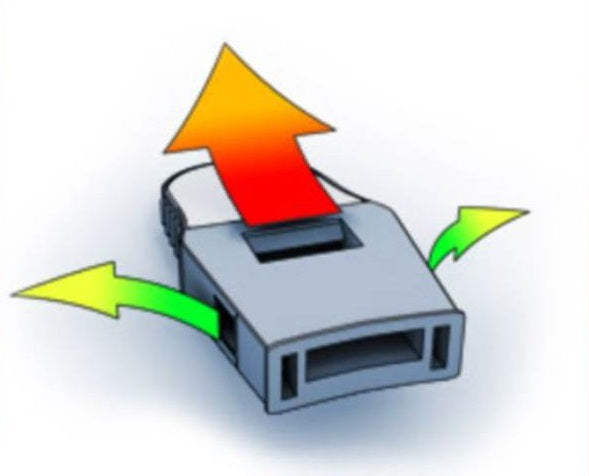- 2 secondary chambers create separate omnidirectional high-pitched sounds